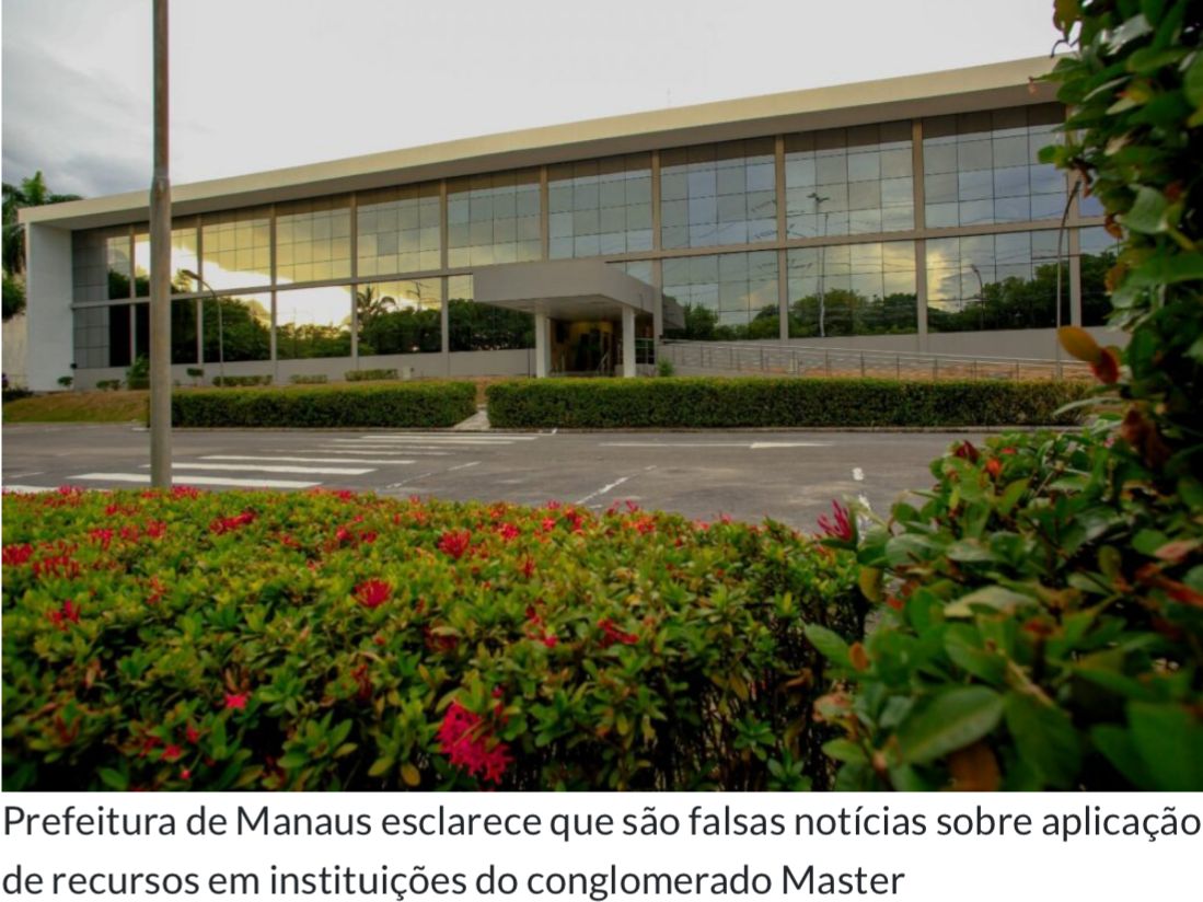 cidade Prefeitura de Manaus esclarece que são falsas notícias sobre aplicação de recursos em instituições do conglomerado Master