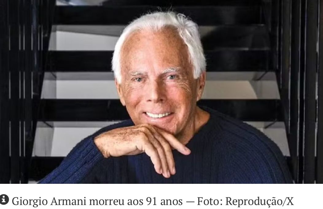 Morreu nesta quinta-feira, aos 91 anos, o estilista italiano Giorgio Armani. O designer ficou conhecido por sua moda minimalista, rigorosa e colaboração com o cinema.