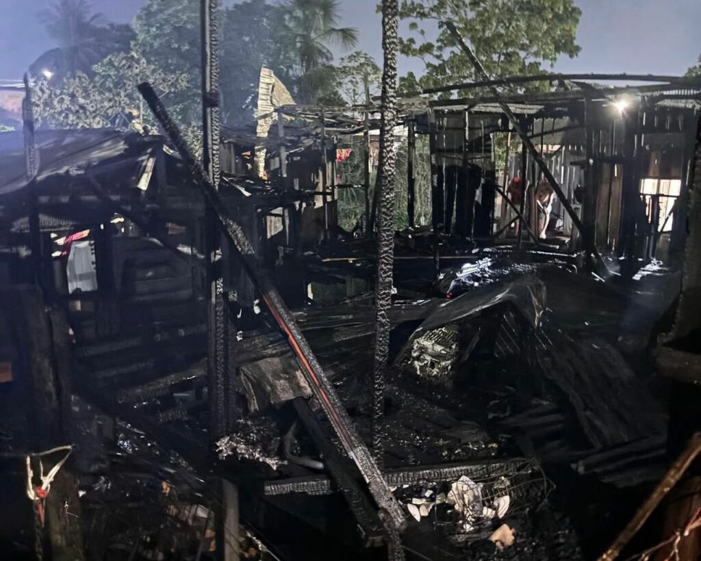 Fogo destruiu seis casas. Cinco pessoas tiveram ferimentos leves, precisaram de atendimento médico e passam bem Um incêndio de grandes proporções destruiu seis casas na