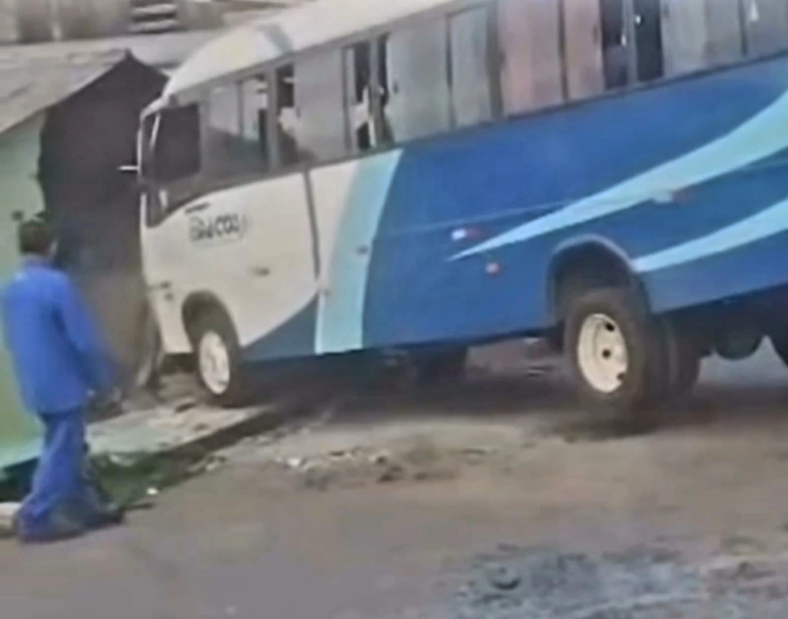 VÍDEO: Micro-ônibus invade residência e destrói fachada no bairro Alvorada em Manaus
