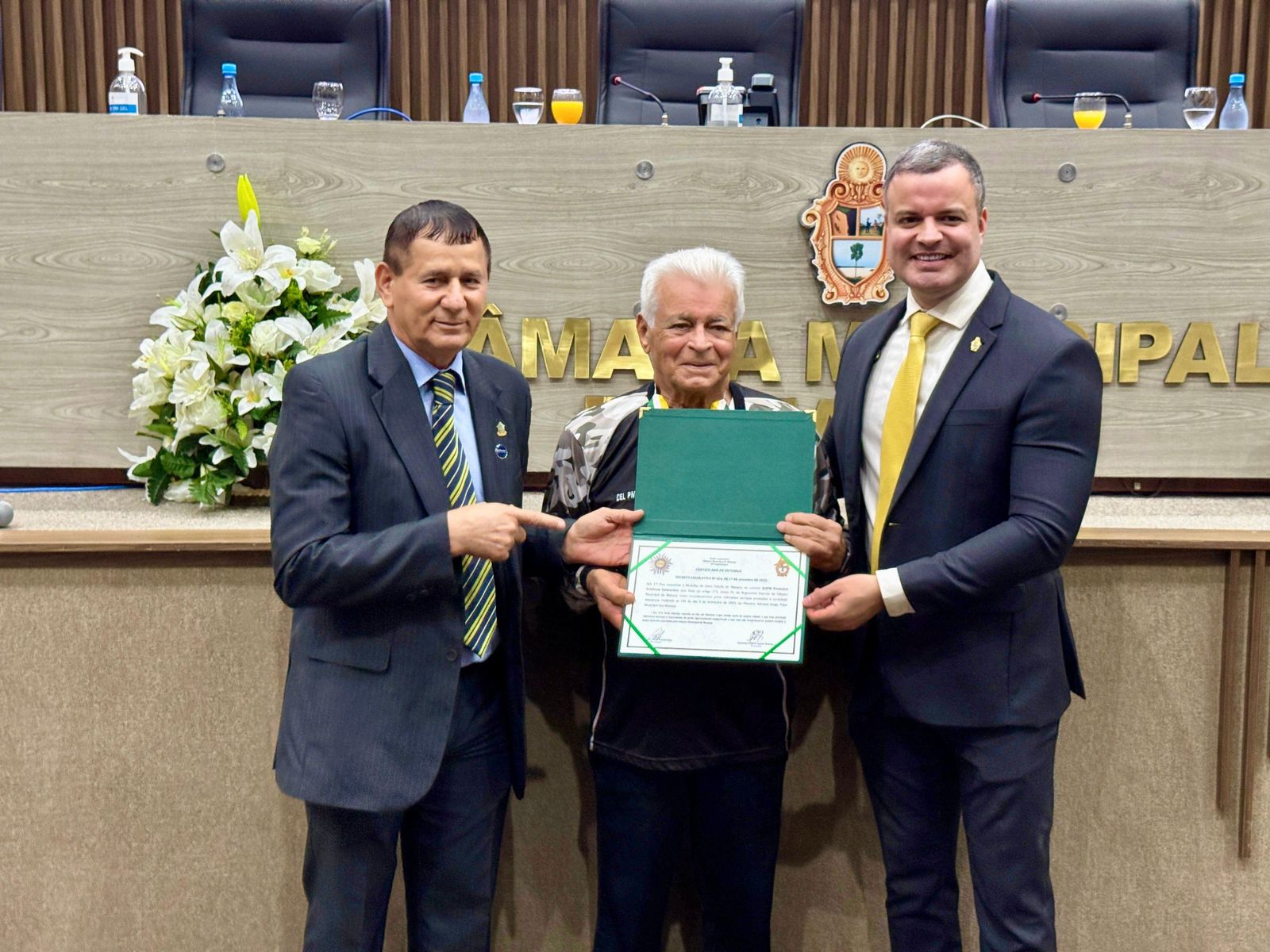 Em uma cerimônia marcada por aplausos, respeito e reconhecimento público, o Coronel Francisco Orleilson recebeu, nesta terça-feira (09/12), a Medalha de Ouro Cidade de Manaus,