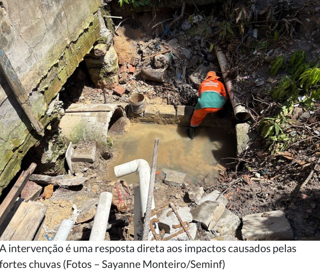 Prefeitura de Manaus, por meio da Secretaria Municipal de Infraestrutura (Seminf), intensificou, nessa quinta-feira, 26/3, os trabalhos de recuperação da rede de drenagem profunda na