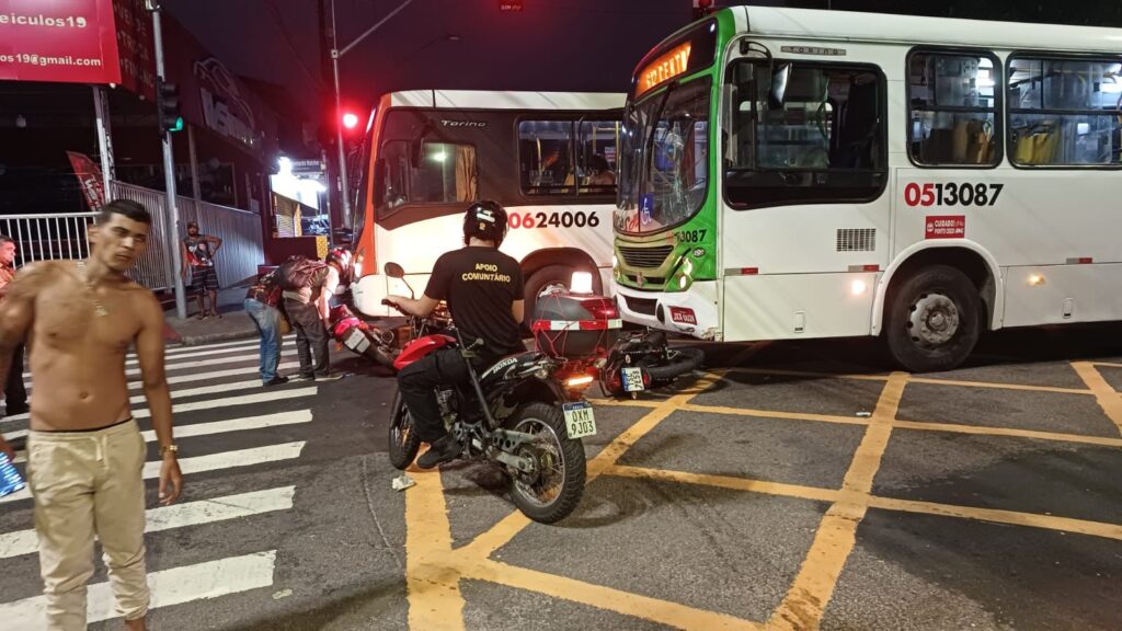 Um acidente envolvendo dois ônibus do transporte público e duas motocicletas deixou motociclistas feridos e complicou o trânsito na noite da última terça-feira (16), em Manaus. A batida aconteceu no cruzamento da avenida Duque de Caxias com a avenida Leonardo Malcher, no bairro Praça 14 de Janeiro, zona Sul da cidade.