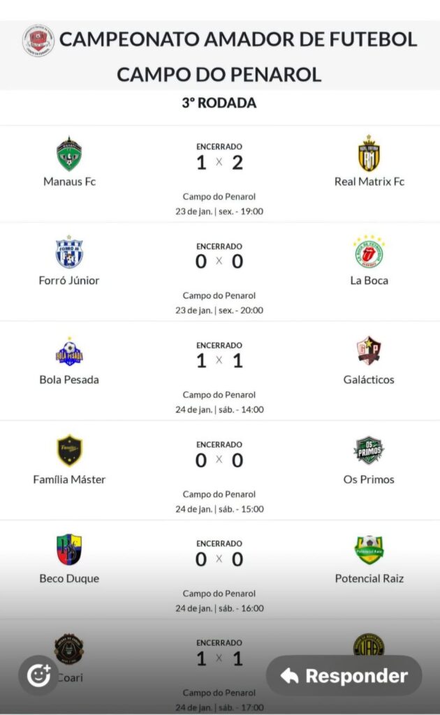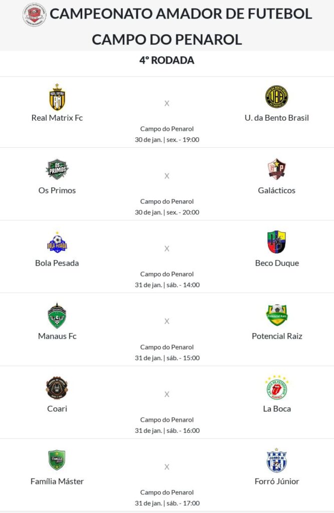 O Campeonato 40TÃO do Campo do Penarol 2026, segue firme com rodadas cheias de emoção. Os Coordenadores RAIMUNDO CABRAL e RODINEY BARROSO, agradecem aos clubes que participam do campeonato pela dedicação ao futebol comunitário da Zona Sul da cidade.