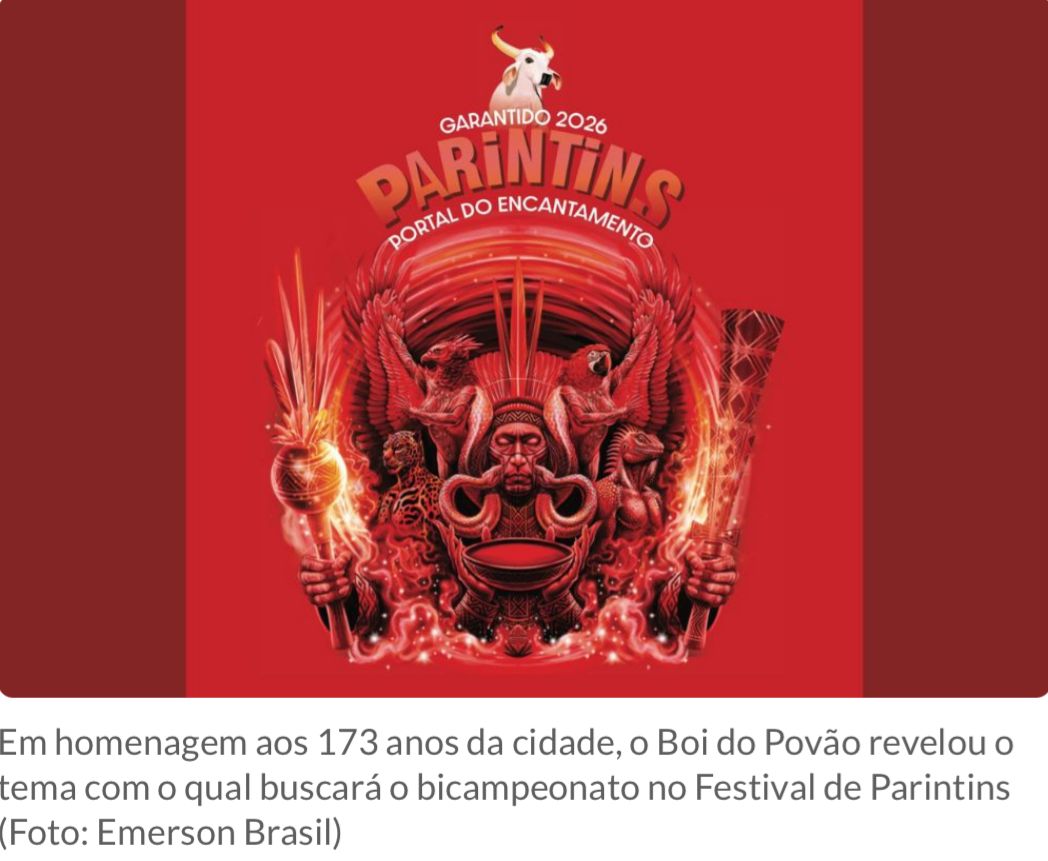 O Boi-Bumbá Garantido anunciou nessa quarta-feira (15), data em que Parintins celebrou 173 anos de fundação, o tema com o qual buscará o bicampeonato no