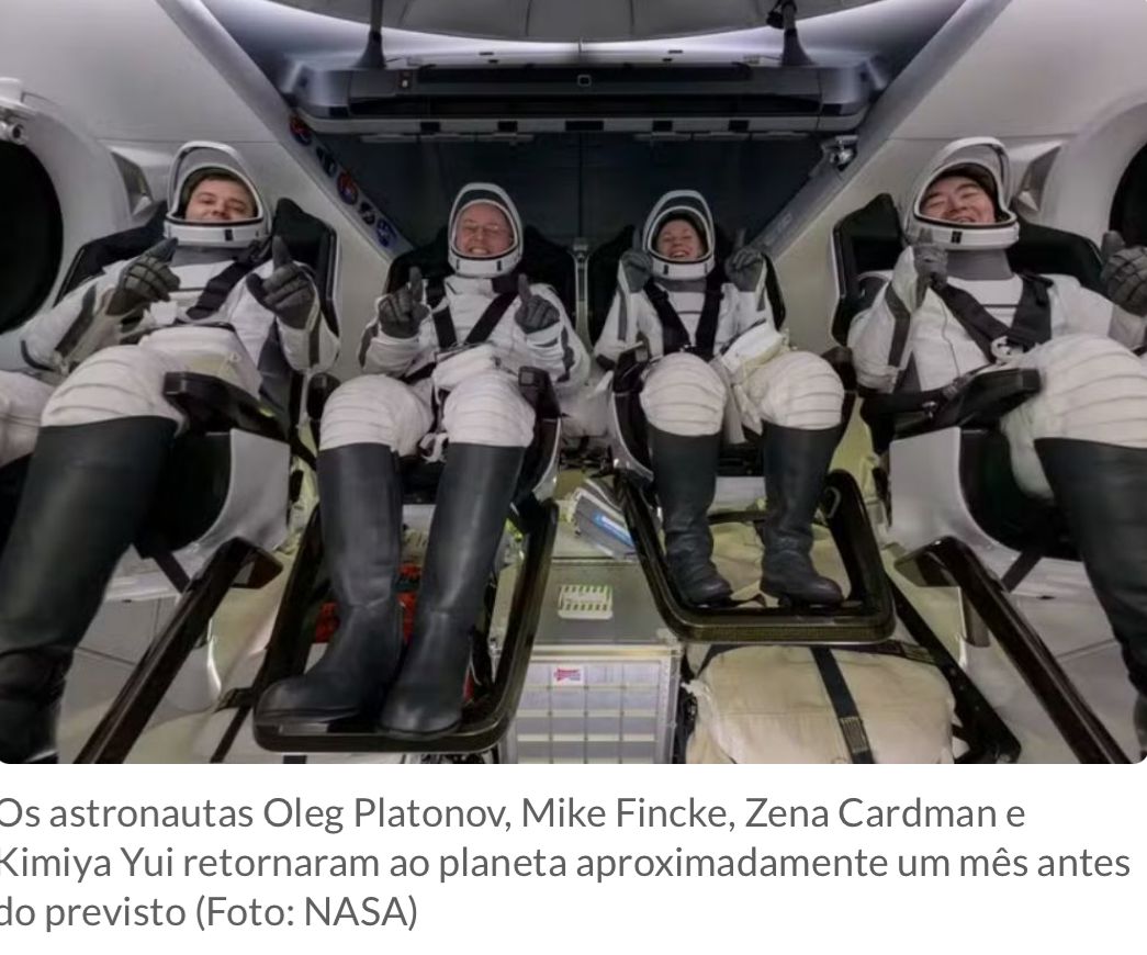 A NASA trouxe de volta à Terra, de forma antecipada, os quatro astronautas da missão Crew-11 da SpaceX após a identificação de um problema médico