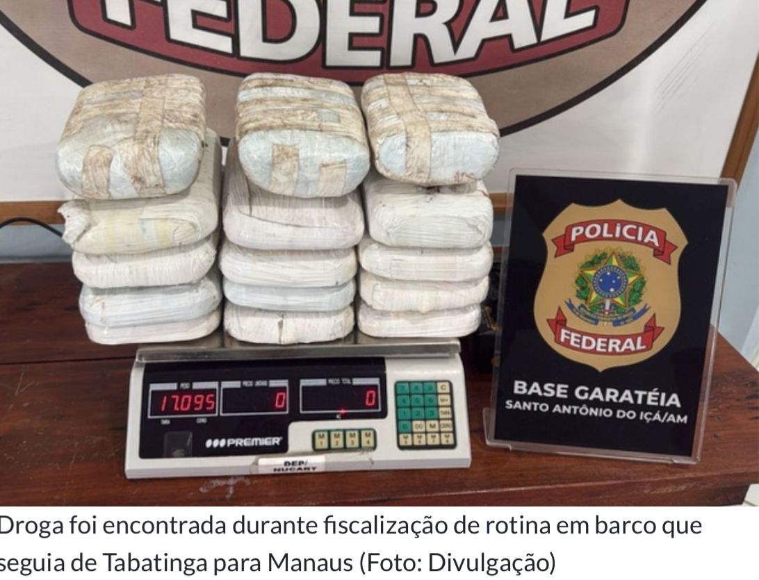 A Polícia Federal (PF) apreendeu, na terça-feira (7), 15 tabletes de substância com resultado preliminar positivo para cocaína durante fiscalização em embarcações no porto de