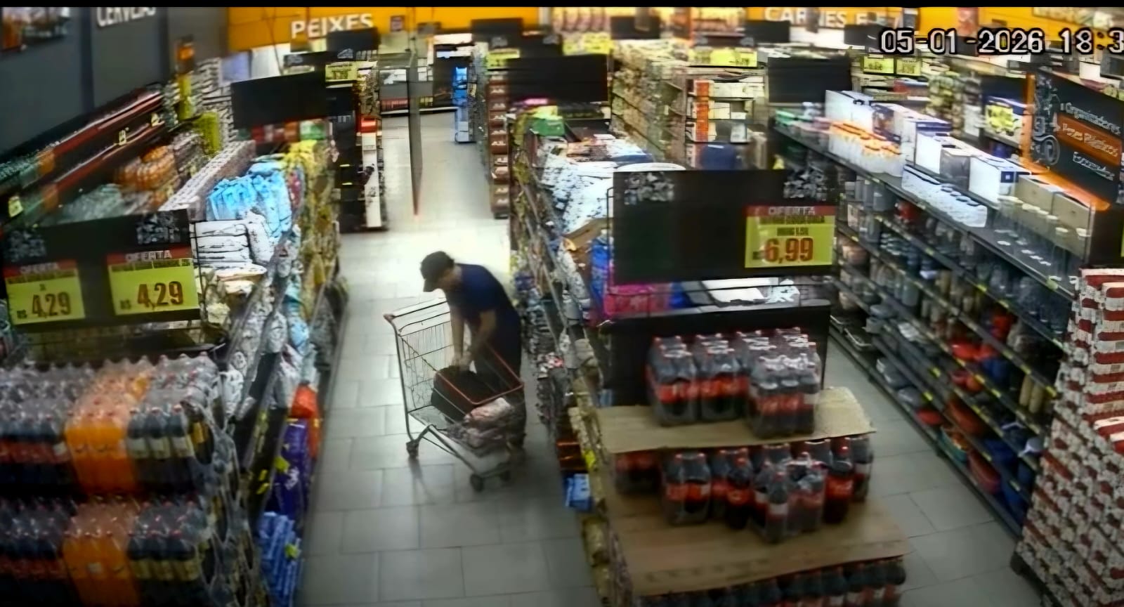 Um homem identificado como Nikolas da Silva Menezes foi preso na noite desta quinta-feira (08), suspeito de furtar carnes nobres em duas unidades de uma