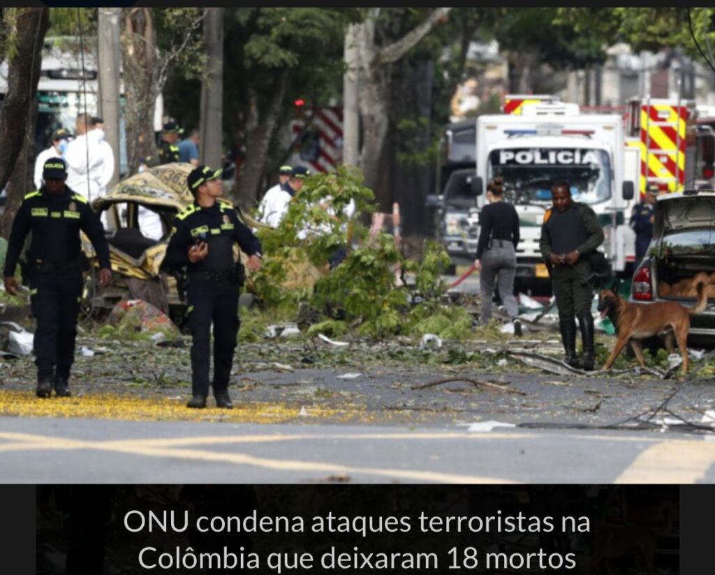 Um helicóptero da polícia foi atingido por drone em Amalfi, Antioquia, matando 12 policiais, enquanto um carro-bomba em Cali provocou seis mortes e 65 feridos. Em nota publicada no X, a ONU pediu que grupos armados não estatais respeitem os direitos humanos e o direito internacional humanitário, diferenciando combatentes de civis.