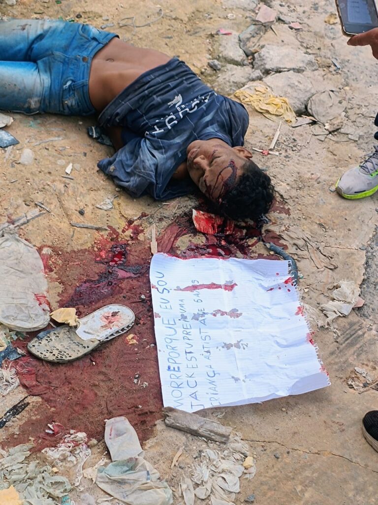 De acordo com informações da Polícia Militar, o homem estava com as mãos amarradas para trás com fios elétricos e apresentava várias marcas de tiros na cabeça, indicando uma possível execução. A cena do crime era marcada por muito sangue e cápsulas de munição espalhadas pelo chão.